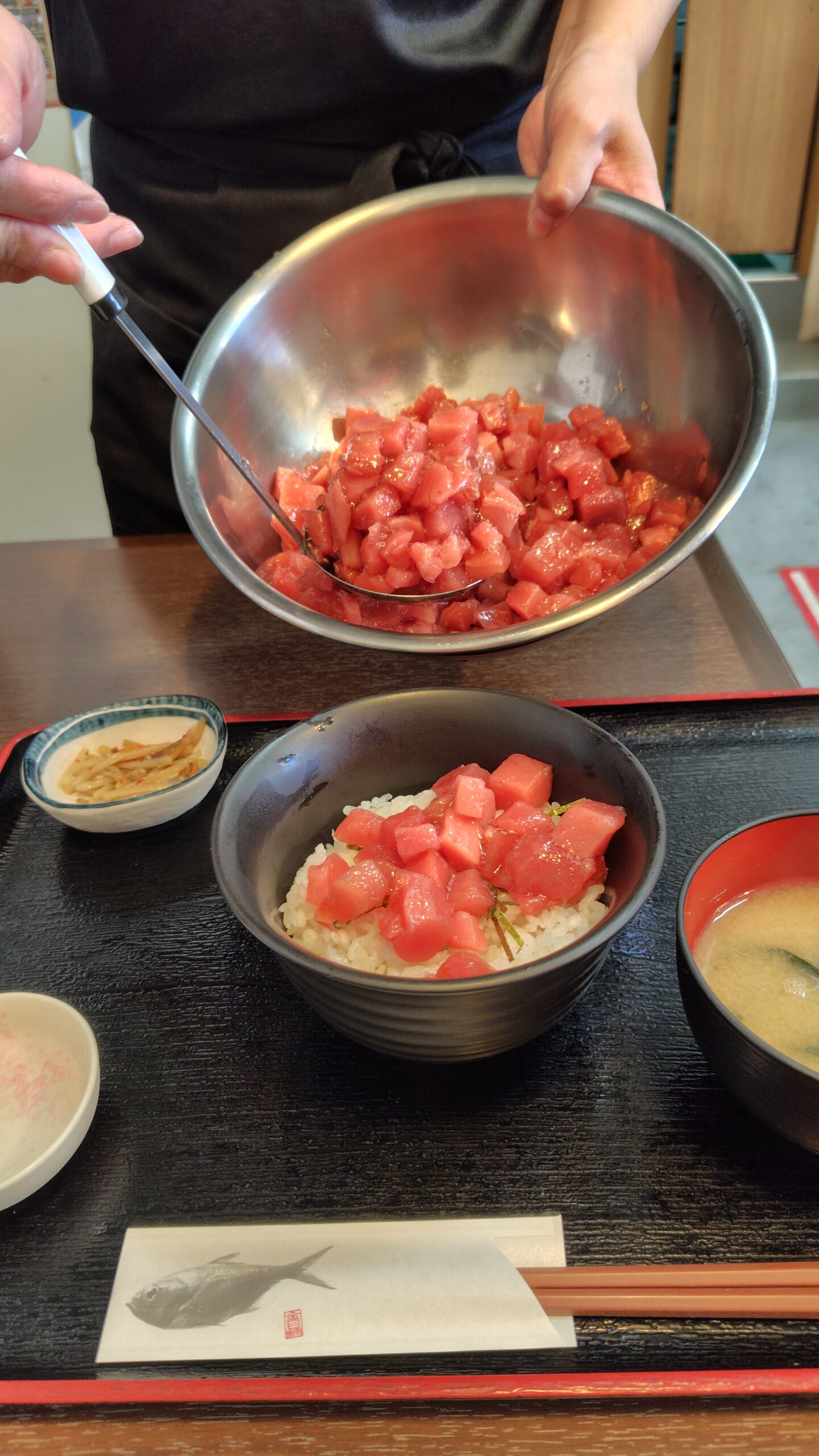 こちらは数量限定の大人気メニューで、「ストップ!」と言うまで、店員さんがどんどんマグロを盛ってくれます🐟あまりの豪快さに驚いていると、あっと言う間にマグロが山盛りに🤣