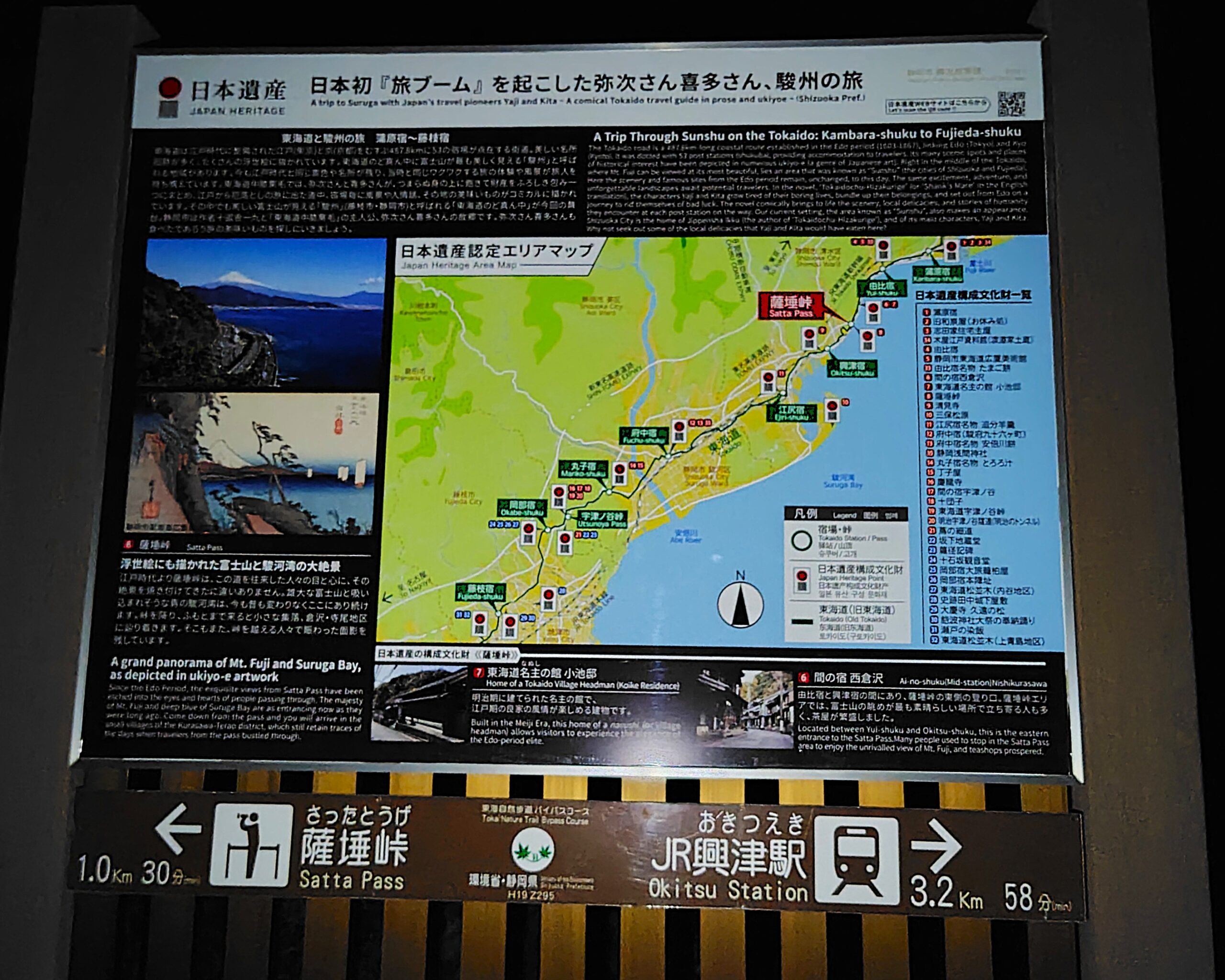 薩埵峠は、歌川広重の浮世絵【東海道五十三次・由比】にも描かれている名所で、富士山と駿河湾の絶景を望むことができます🗻