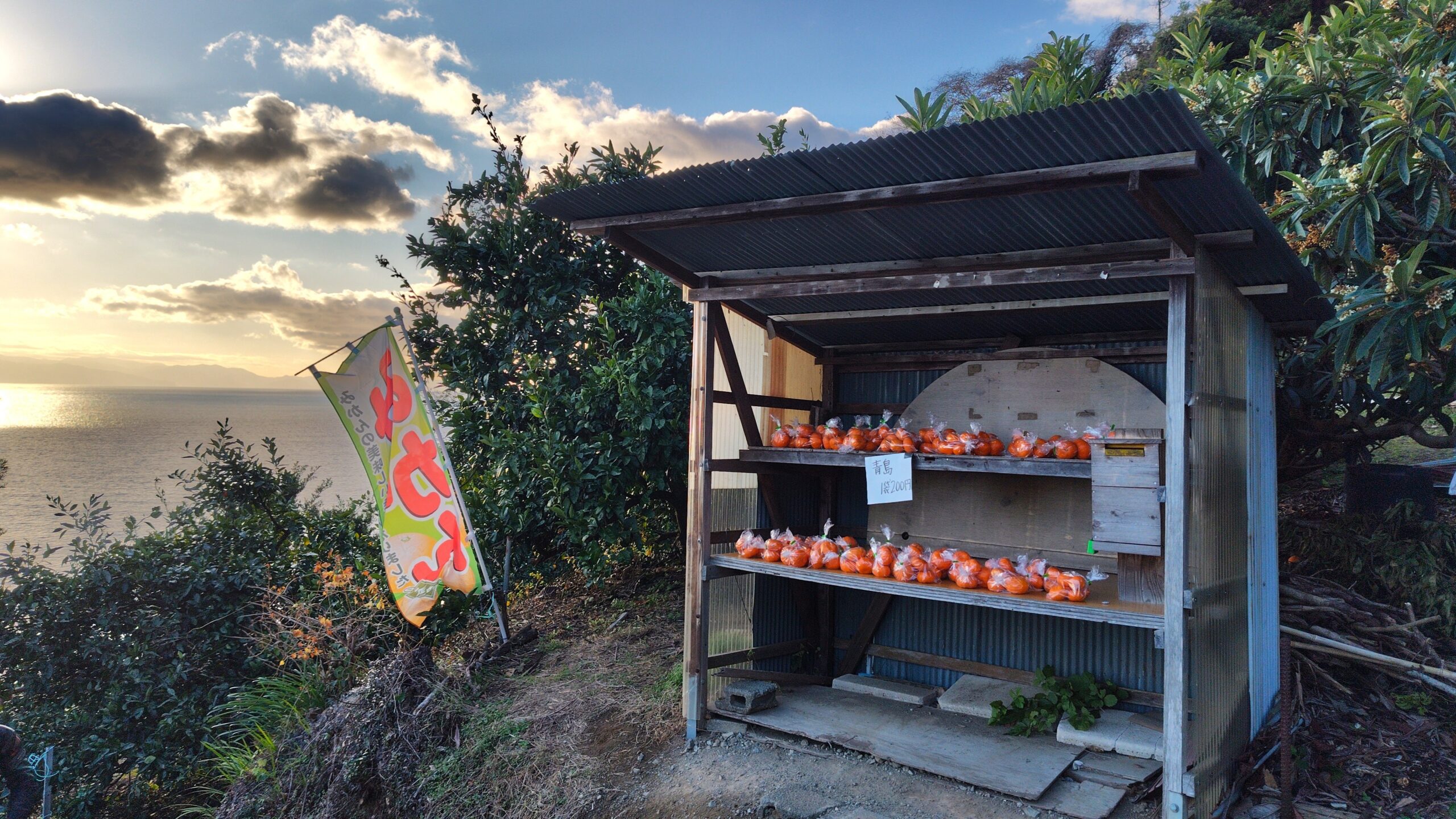 峠の斜面にはミカン畑が広がっていました🍊静岡県はお茶と並んで、ミカンの産地としても有名です。道沿いにはミカンの無人販売所もありますので、訪れた際はぜひ味わってみてください😋