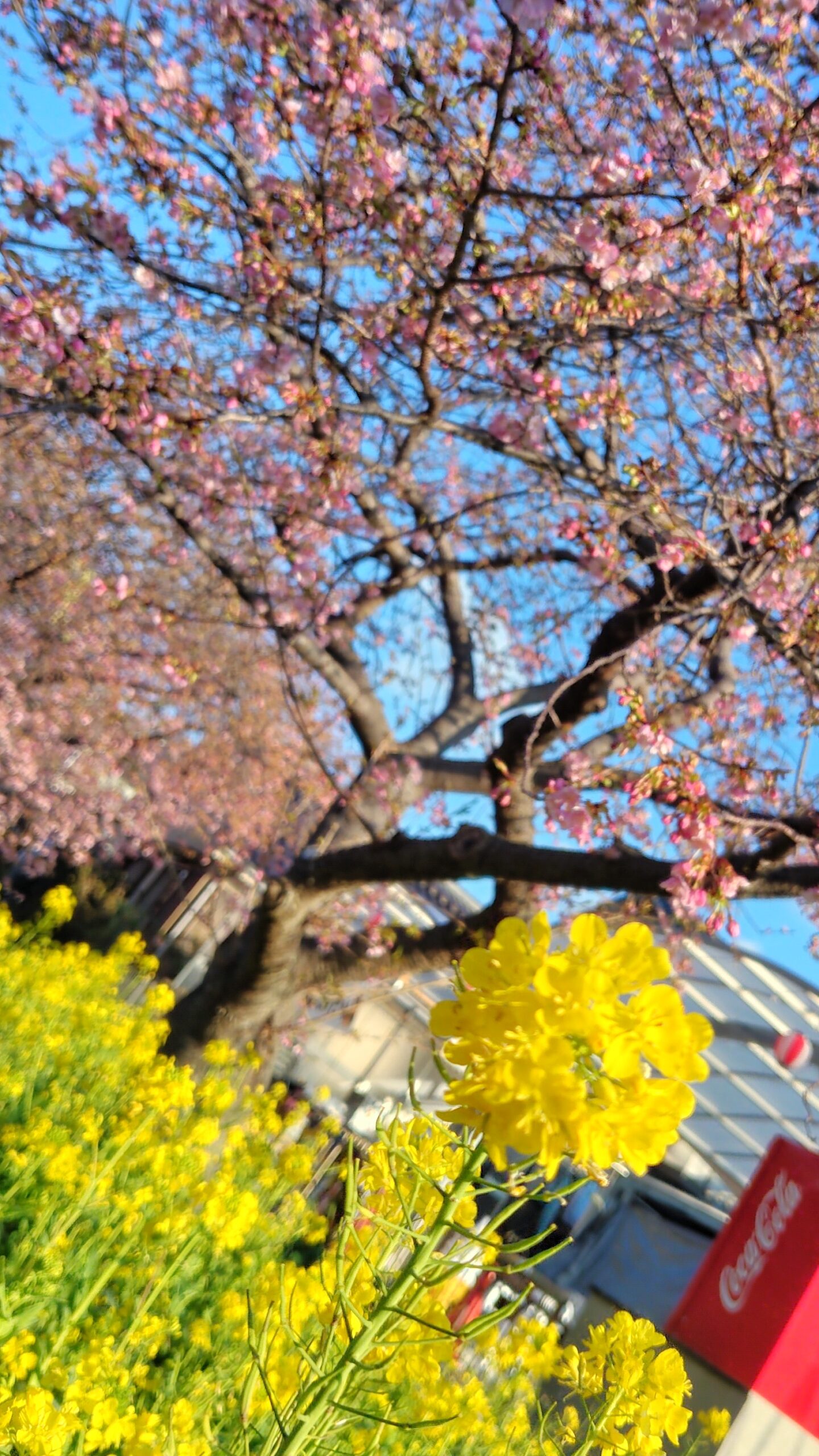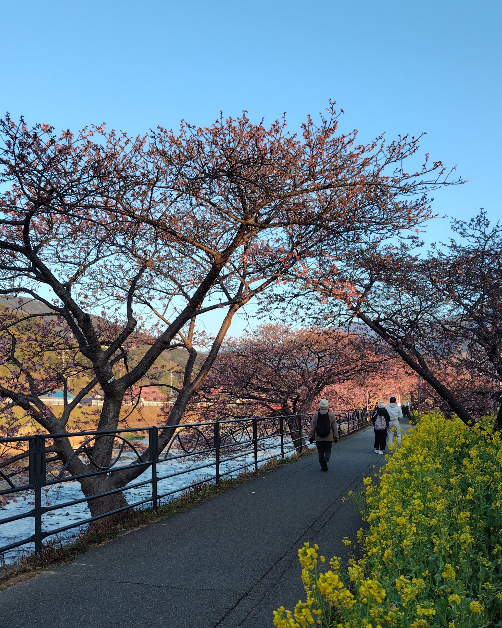 とってもキレイです🌸河津川沿いには、菜の花とのコラボレーションが楽しめるスポットもありました😆