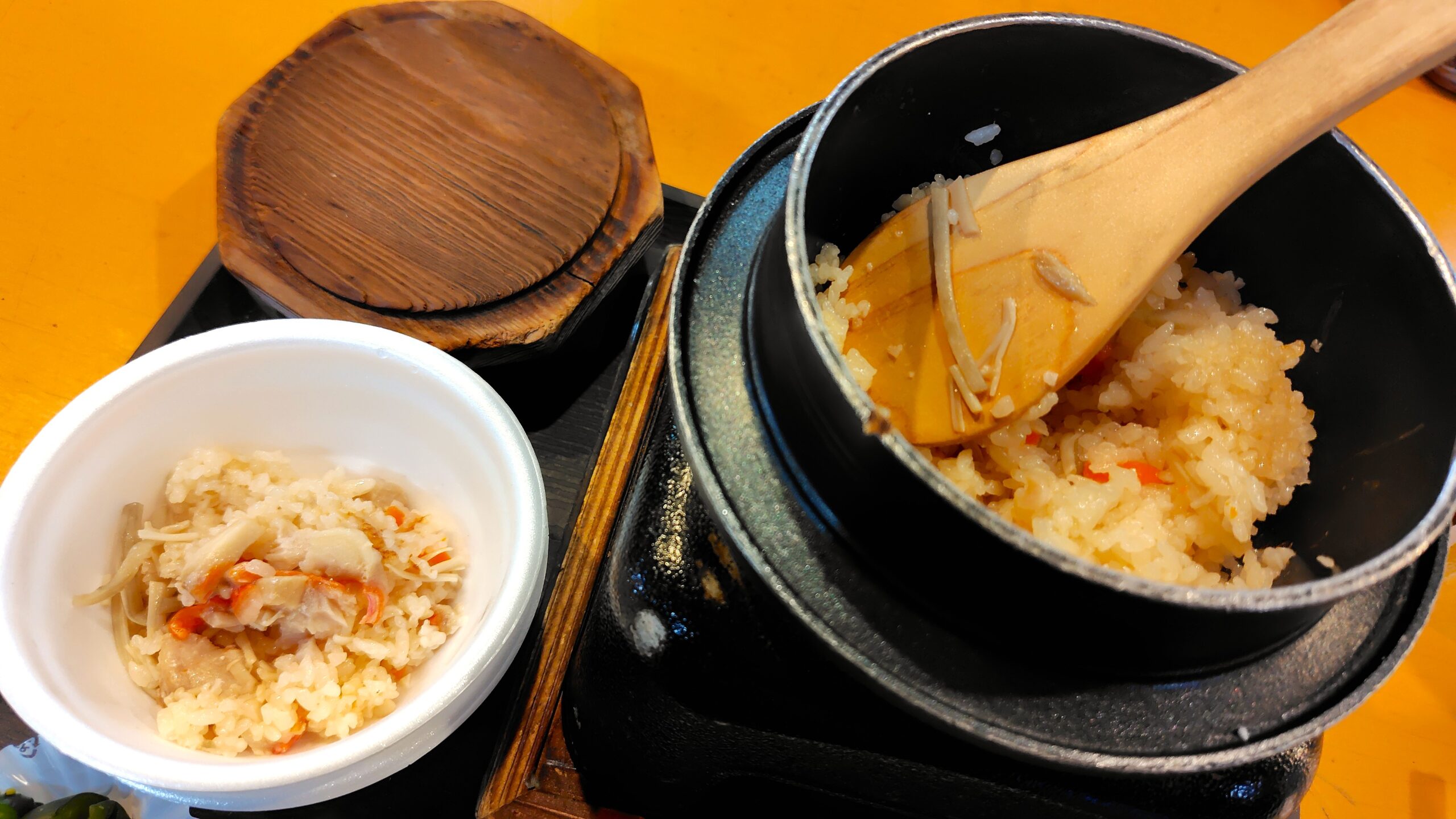 フタを開けるとお魚とご飯の炊ける良い匂い😍釜の底には香ばしいおこげが待っています🍚注文が入ってから1人分ずつ炊くので少し時間がかかりますが、待つ価値は大いにある美味しさです😆