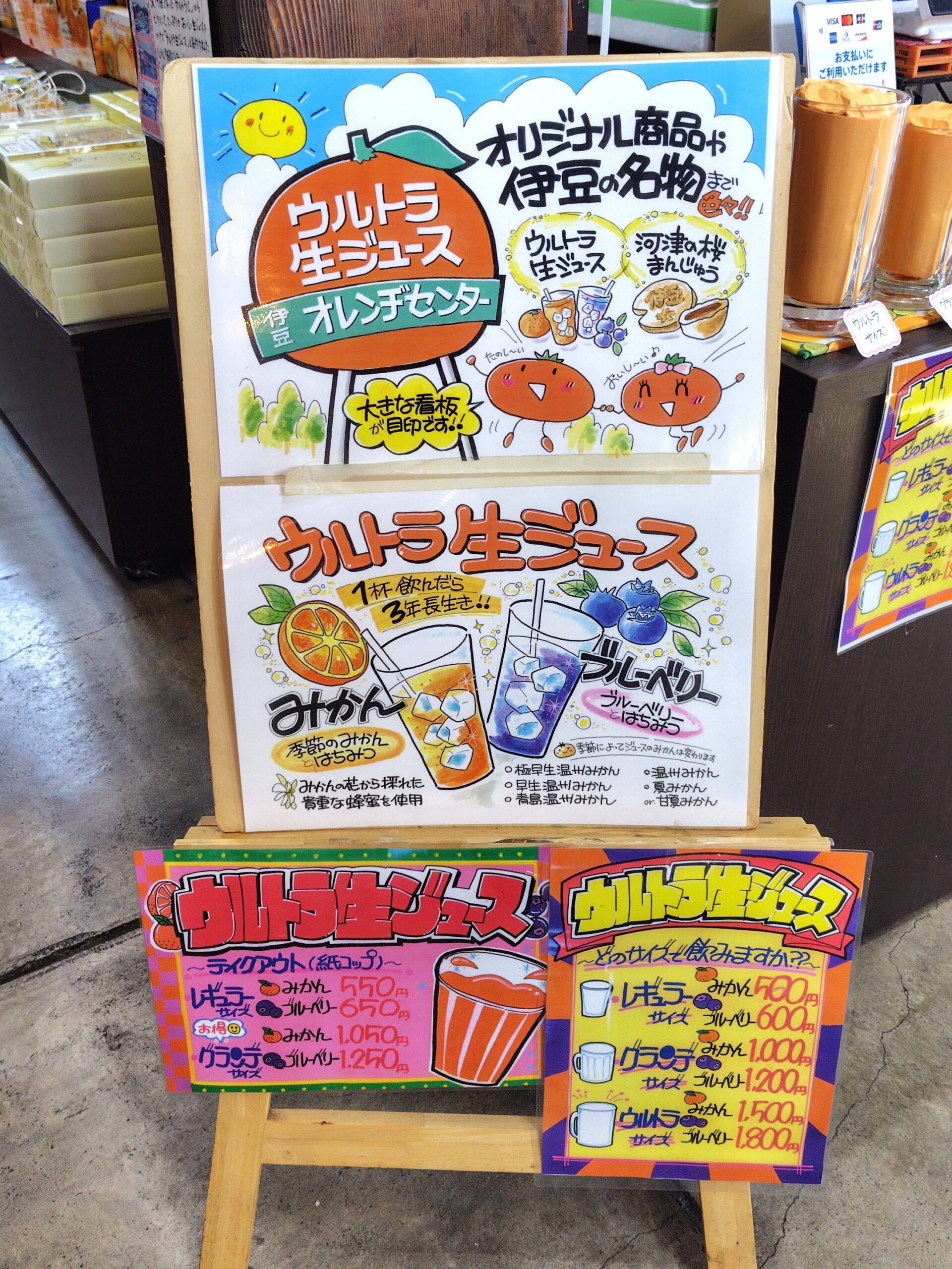 河津町から稲取に向かう途中、伊豆オレンヂセンターへ寄りました!こちらの名物は、伊豆の太陽をたっぷり浴びた自家製みかんとハチミツの『ウルトラ生ジュース』です🍊