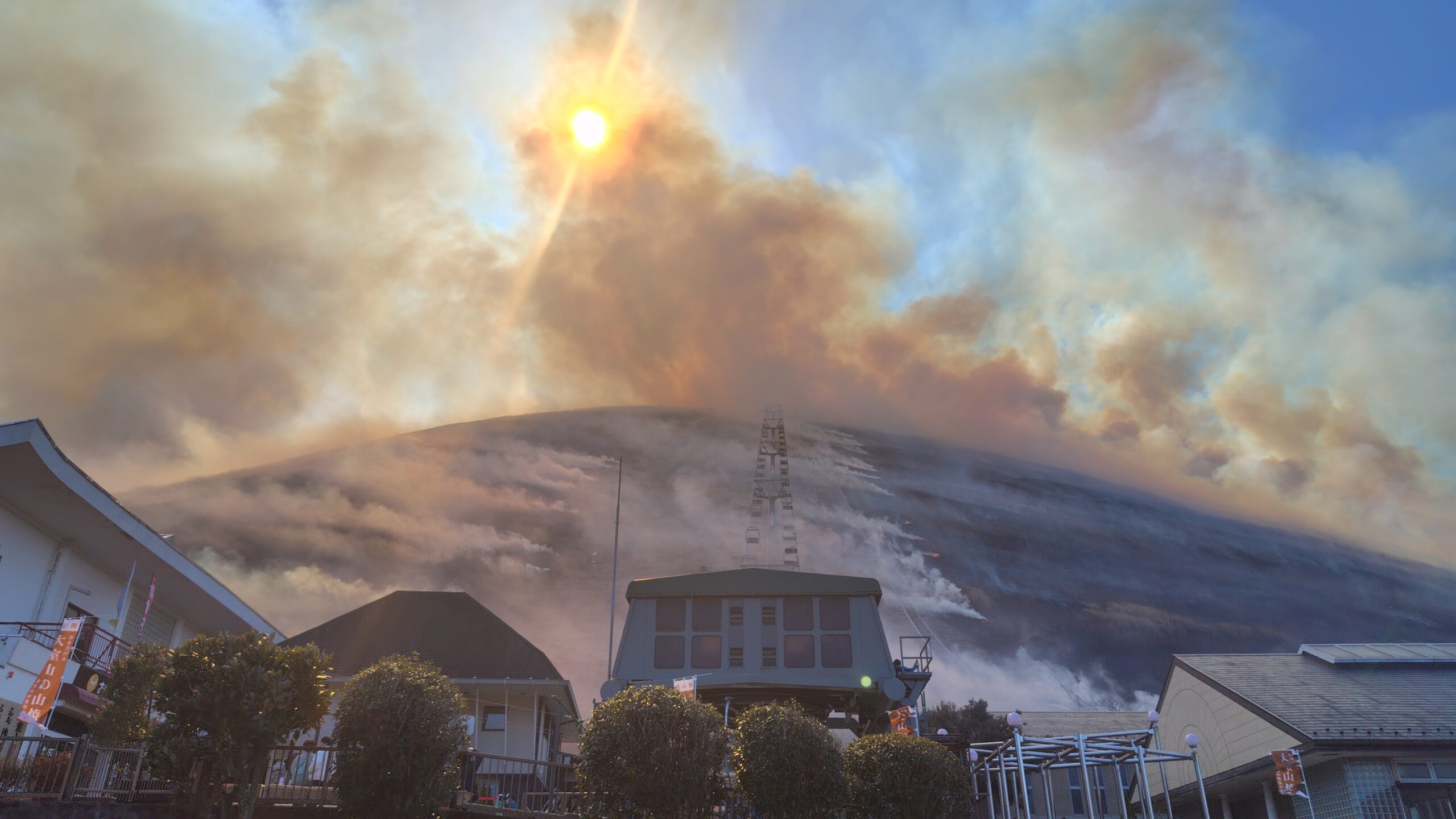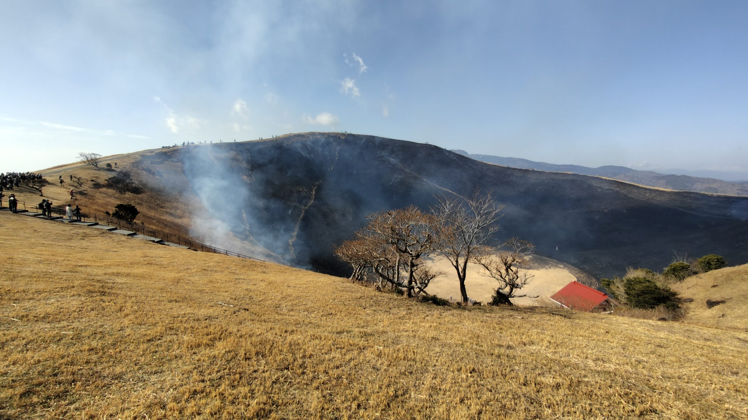 山頂のお鉢部分が真っ黒に焼けました!風向きによっては煙を浴びることになるので、ご参加の際はマスクやハンカチなど口を覆えるものをご用意ください😷